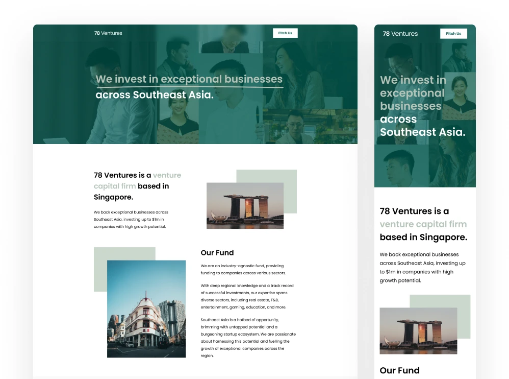 Kami merancang ulang website dan identitas visual eksklusif untuk firma investasi 78 Ventures.